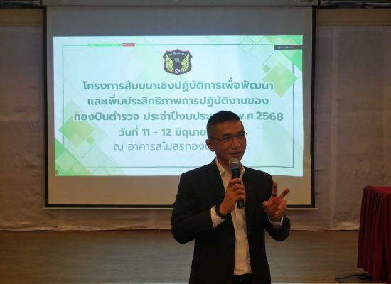 เมื่อวันที่ 11 – 12 มิถุนายน 2568 กองบินตำรวจ จัดโครงการสัมมนาเชิงปฏิบัติการเพื่อพัฒนาและเพิ่มประสิทธิภาพการปฏิบัติงานของกองบินตำรวจ ณ อาคารสโมสรกองบินตำรวจ By TPaduser2มิถุนายน 13, 2025สิงหาคม 14, 2025กิจกรรมกองบินตำรวจ