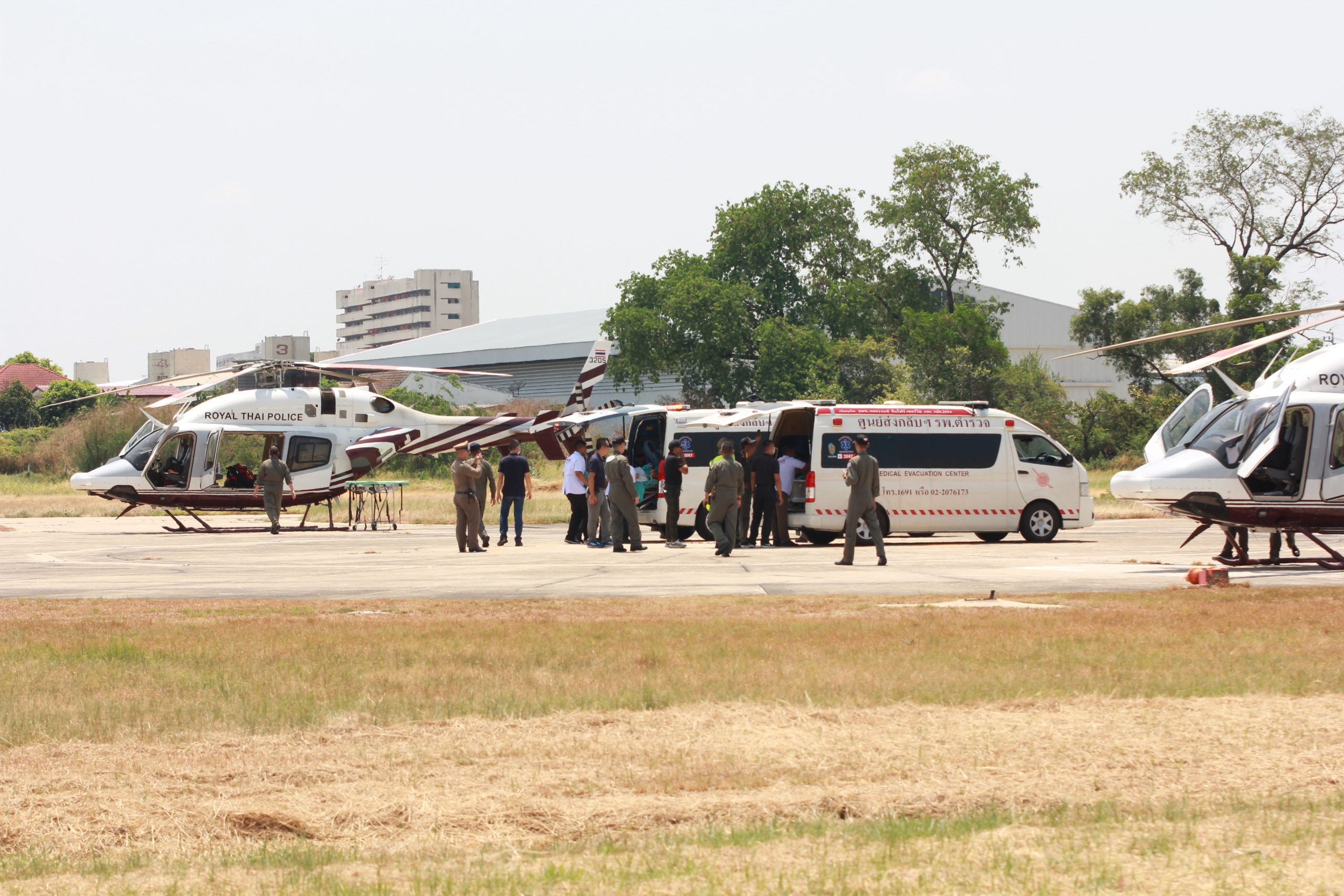 เมษายน 25, 2024เมษายน 29, 2024ภารกิจ เมื่อวันที่ 25 เม.ย.67 เวลาประมาณ 10.00 น. กองบินตำรวจ ได้จัด ฮ.เบลล์ 429 จำนวน 2 ลำ พร้อมเจ้าหน้าที่แพทย์และพยาบาล รพ.ตำรวจ ปฏิบัติภารกิจส่งกลับทางการแพทย์ทางอากาศ ในการเคลื่อนย้ายข้าราชการตำรวจผู้มีอาการป่วยโรคลมแดด (ฮีทสโตรก) จากการฝึกโดดร่ม จำนวน 2 ราย จาก บก.สอ.บช.ตชด. (หน่วยบิน ตร. หัวหิน อ.ชะอำ จว.เพชรบุรี) มายัง กองบินตำรวจ และส่งต่อรถพยาบาลไปยัง รพ.ตำรวจ การปฏิบัติเป็นไปด้วยความเรียบร้อย